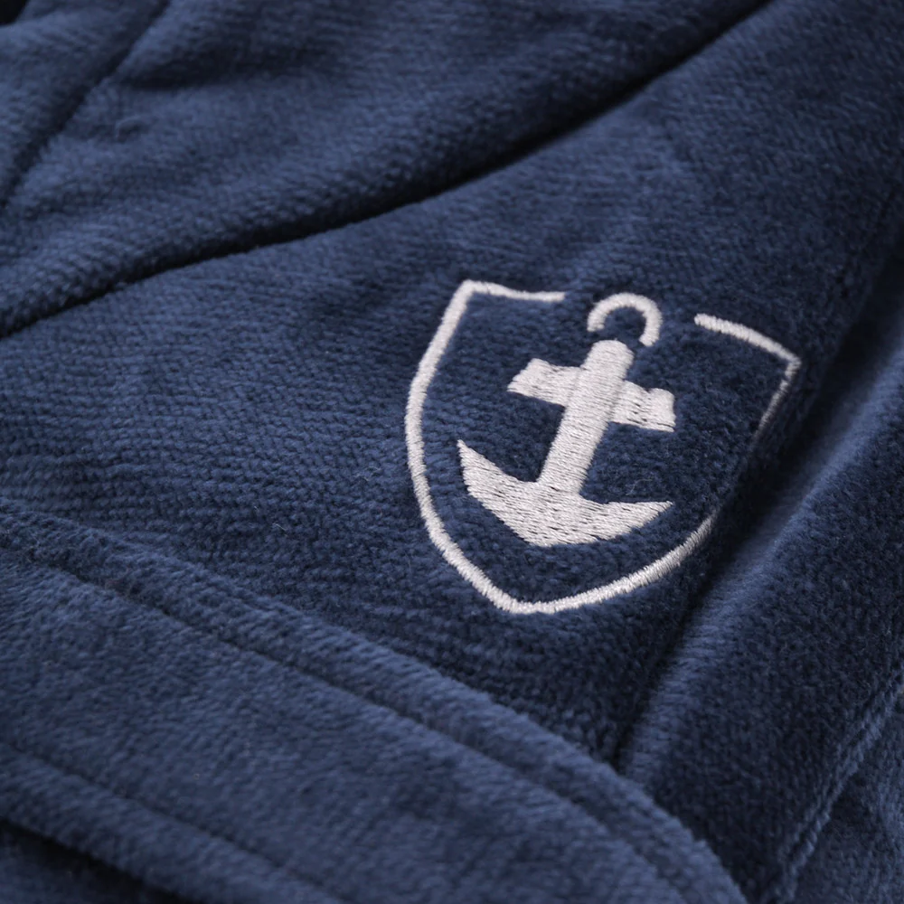 Ce modèle bicolore en bleu marine et gris est confectionné dans un grammage élévé (450grs/m2) ce qui lui confère un confort inégalé et vous garantit un séchage optimal après votre bain.